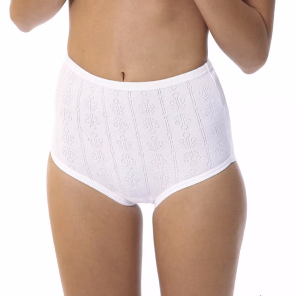 Braga alta de mujer en tejido de algodón calado.
