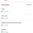 Aqua, Glycerin, Parfum, Sodium Benzoate, Levulinic Acid, Sodium Levulinate, Gardenia Taitensis Flower Extract, Citric Acid, Potassium Sorbate, Sodium Hydroxide, Sorbic Acid