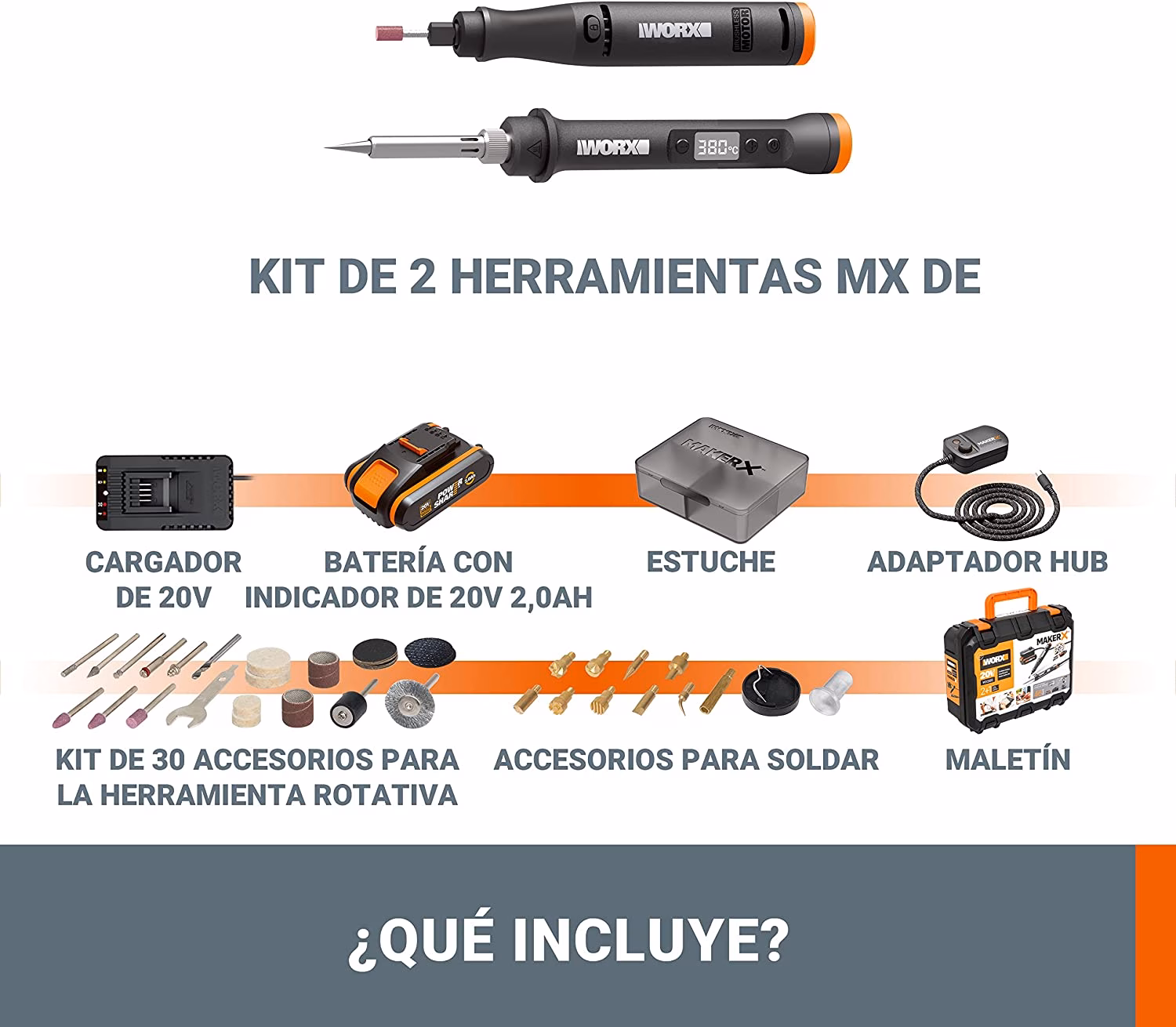 - [Herramienta rotativa + soldador] 2 herramientas que añaden un nivel extra de detalle, personalización y profesionalidad a tu trabajo.
