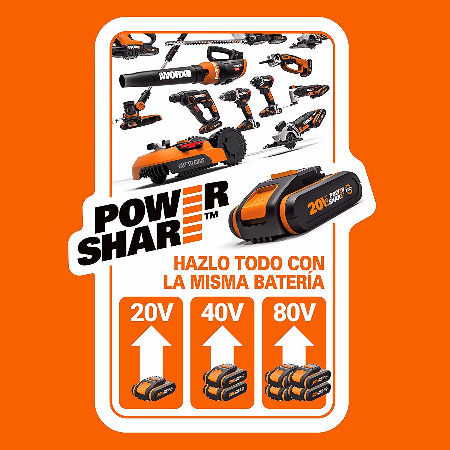 - [PowerShare] Worx PowerShare es compatible con todas las herramientas Worx 20V, herramienta eléctrica de jardín y de estilo de vida.
