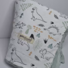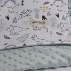 Hay UNA unidad igual a las fotos disponible para ENTREGA INMEDIATA. Una preciosa combinación, por un lado verde mint y por el otro divertidos dinosaurios sobre fondo crudo.