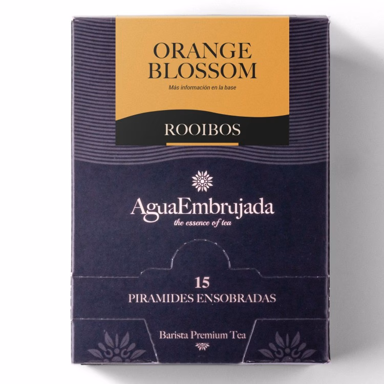 Rooibos Orange Blossom de Agua Embrujada. Estuche de 15 pirámides biodegradables.
