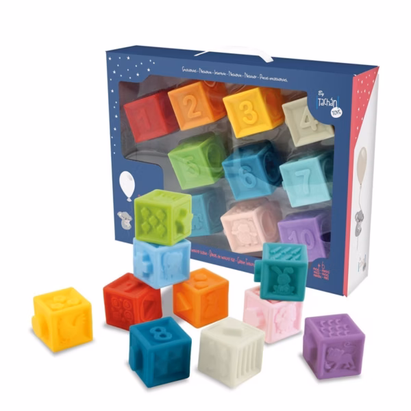 El set de 10 cubos blanditos educativos By Tachán es un juguete sensorial ideal para acompañar el desarrollo temprano de bebés y niños pequeños. Cada cubo está diseñado con números, formas geométricas y colores llamativos que fomentan el reconocimiento visual, la coordinación y la curiosidad desde edades tempranas.