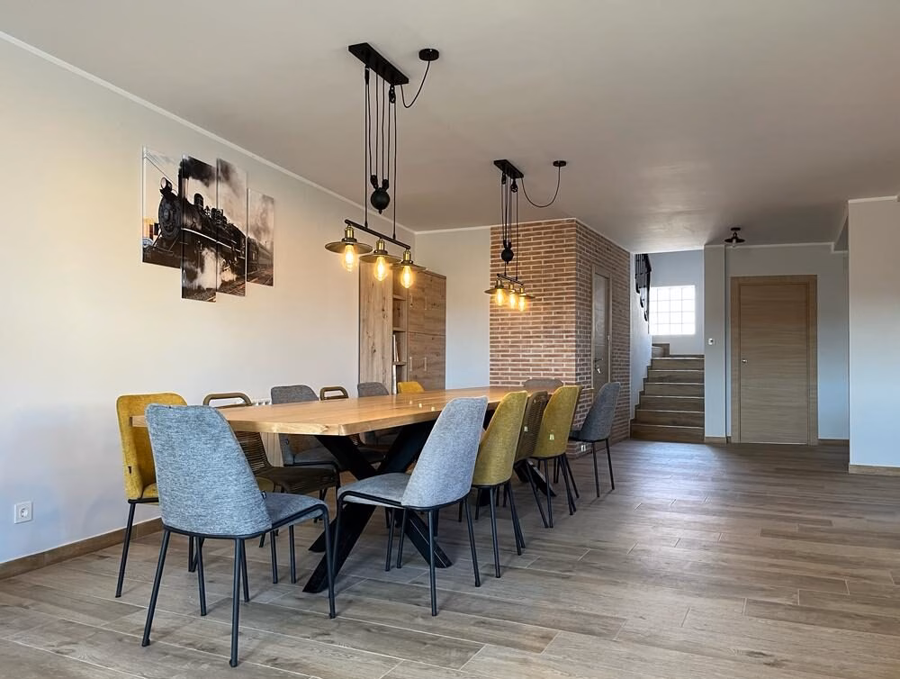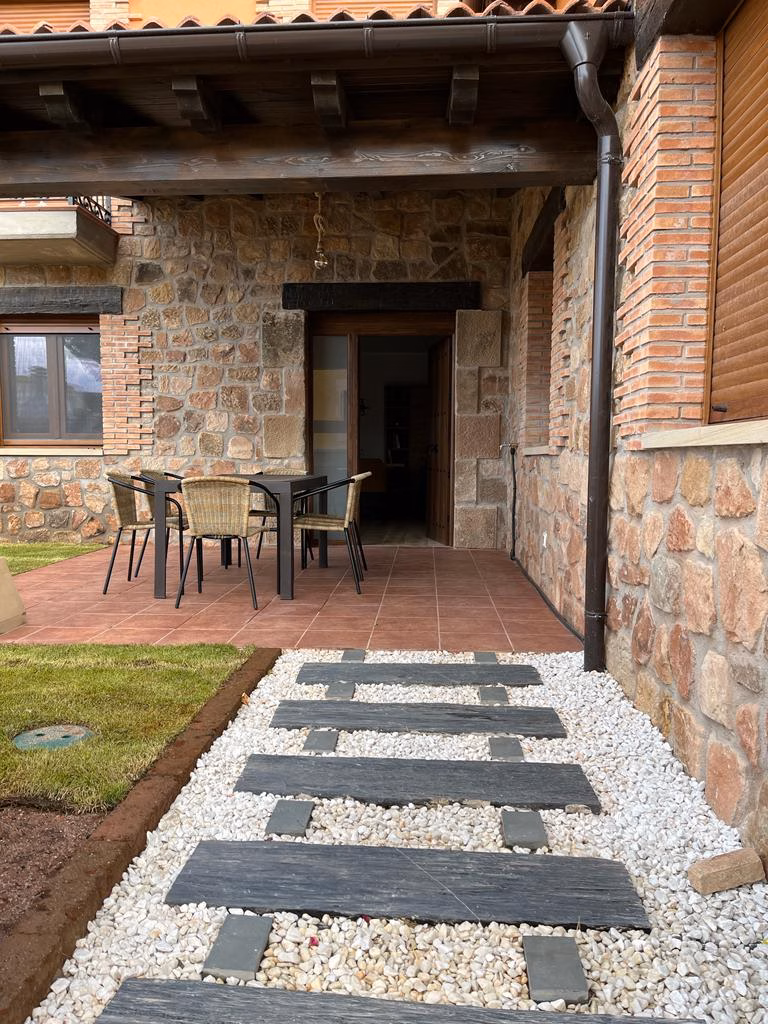 Cuenta con jardín, porche, barbacoa y amplias estancias comunes.